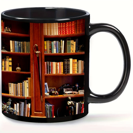 1pc, Library Bookshelf Cup, Book Lover Coffee Cup, Librarian Cup, Book Coffee Cup, Book Club Cup, Library Items, Bookworm Cup Gift, Given To Readers, Book Lover's Book Gift, Black