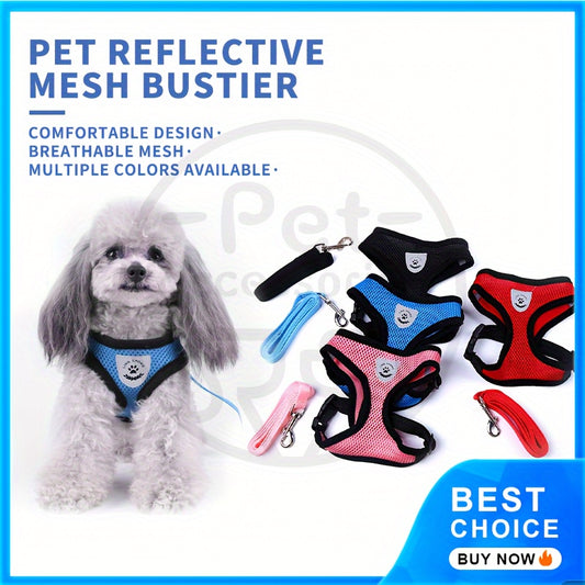 Reflective Pet Harness And Leash Set For Dogs And Cats, Adjustable Puppy Cat Vest Harness With Soft Mesh