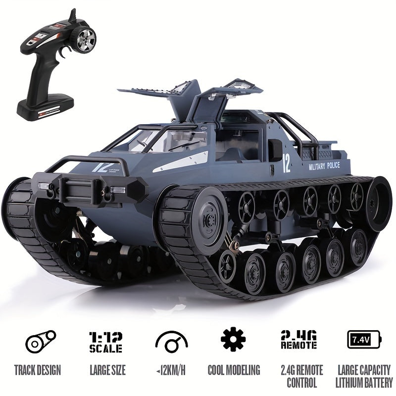 1/12 Escala 2.4GHz 12KM/H Tanque de Control Remoto de Alta Velocidad, Vehículo Militar de Juguete con Rotación de 360°, Regalo de Cumpleaños y Navidad