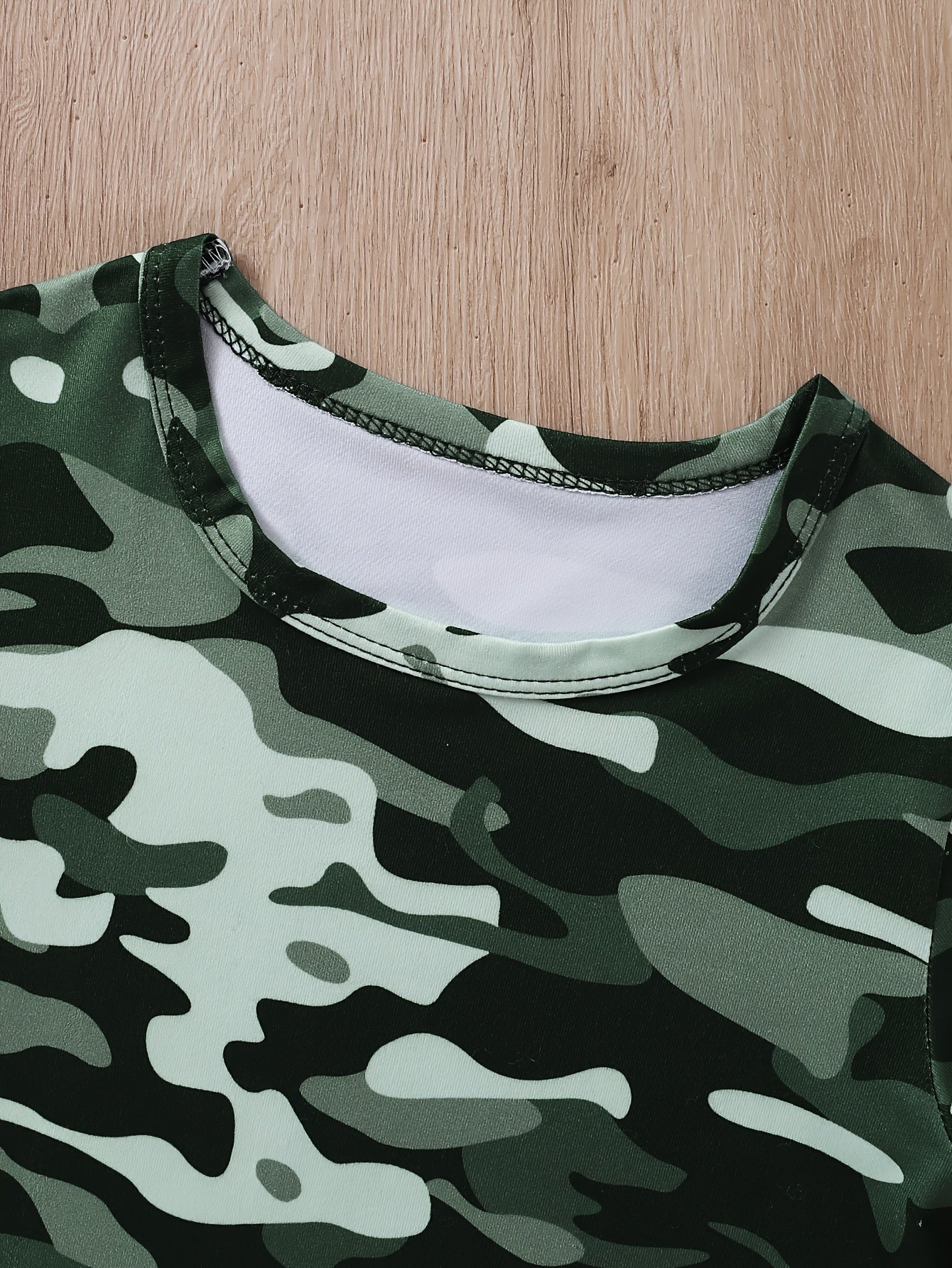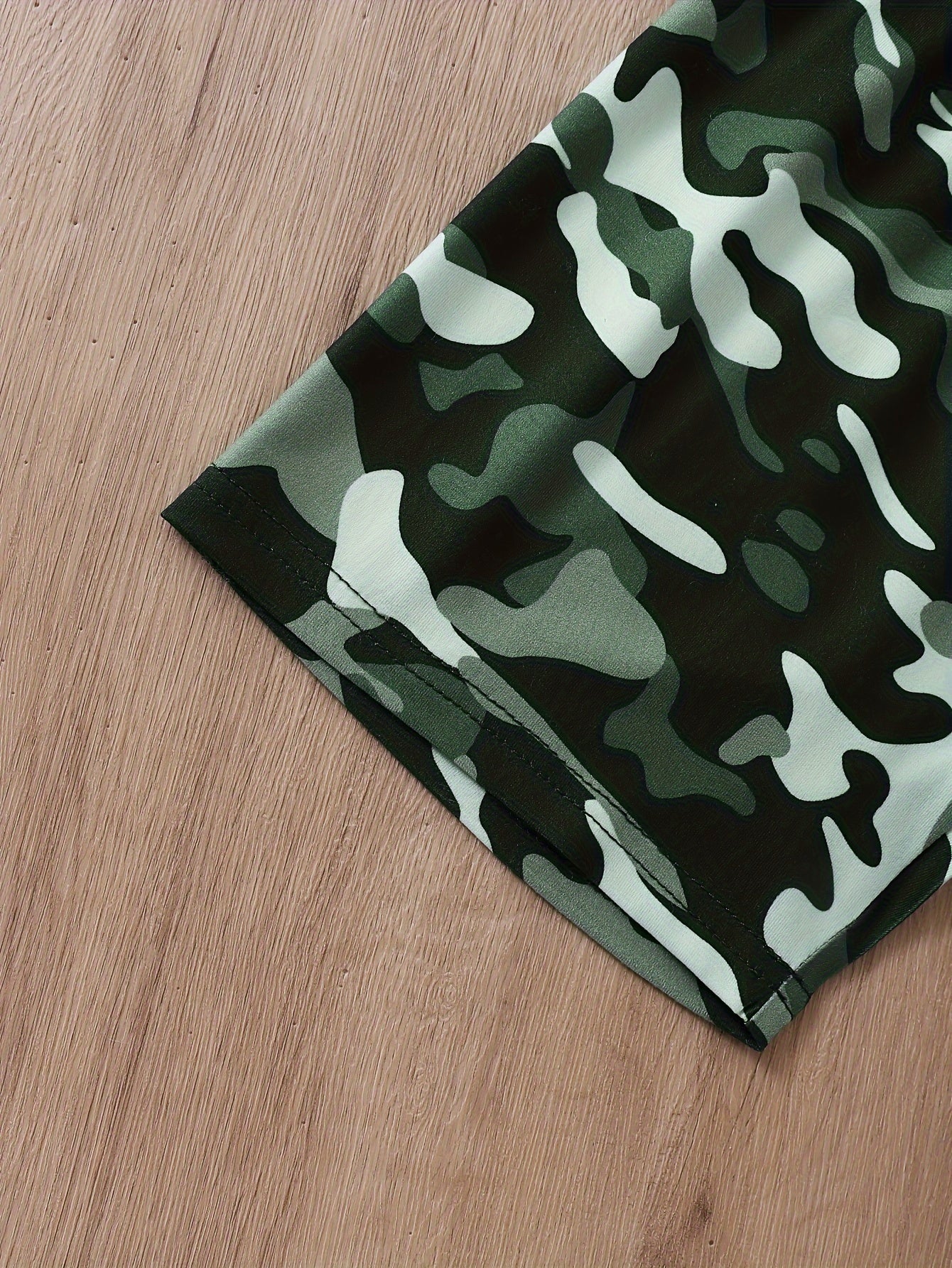 2pcs Boys Casual Camouflage Short Sleeve T-shirt & Shorts Set, Comfy Summer Boys Clothes