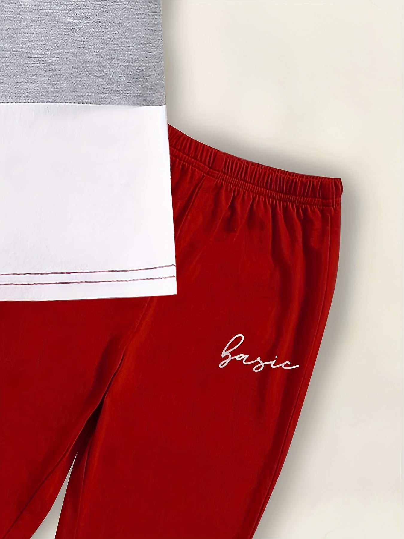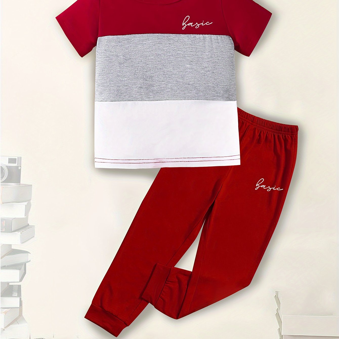2pcs Boys Casual Letter Print Short Sleeve Colorblock T-shirt & Pants Set, Comfy Kids Clothes