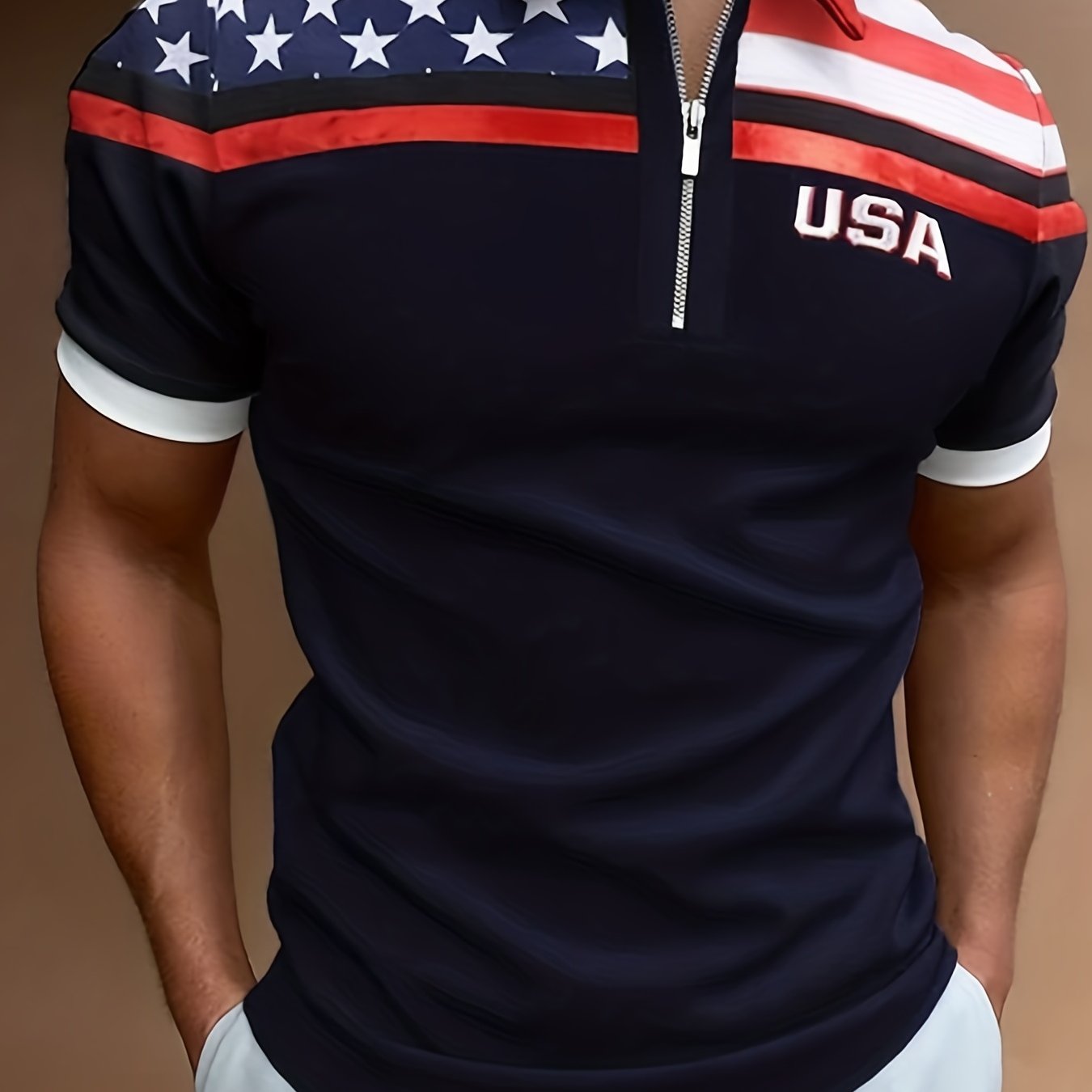 Buy Golf Polo Shirt Today. Celebrate your patriotism and style with our American Flag Elements Pattern Print Men's Casual Short Sleeves Zip Up Graphic Shirts. Perfect for the golf course or casual wear, this polo shirt features a bold USA flag design that will make a statement. Show off your love for country and fashion with this must-have.
