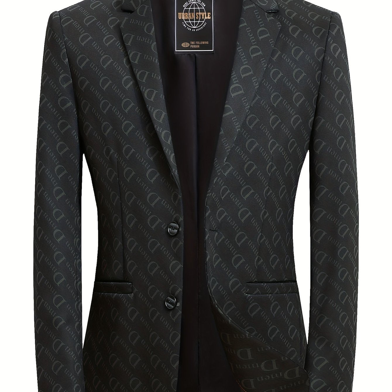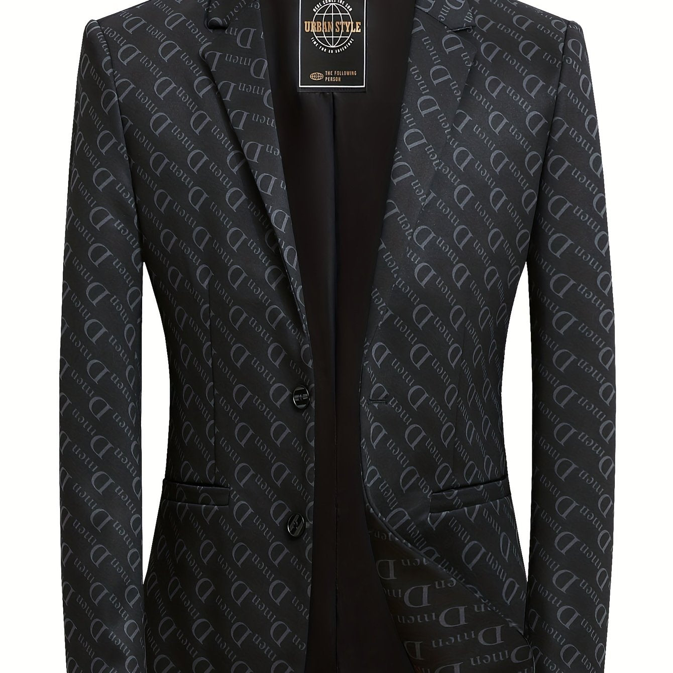 Blazer De Dos Botones Con Estampado De Letras, Chaqueta De Traje Semiformal Para Hombre Para Banquete De Negocios