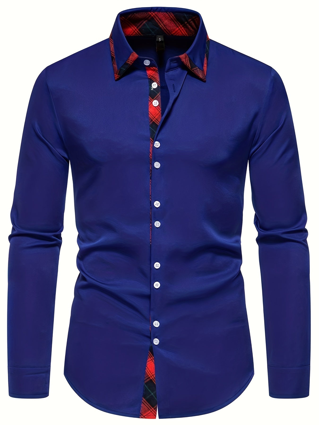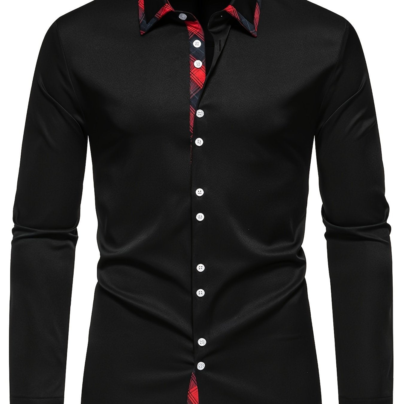 Camisa De Manga Larga Para Hombres Con Patrón A Cuadros Y Bloques De Color, Camisa De Botones Para Ocasiones De Negocios, Regalo Para Hombres