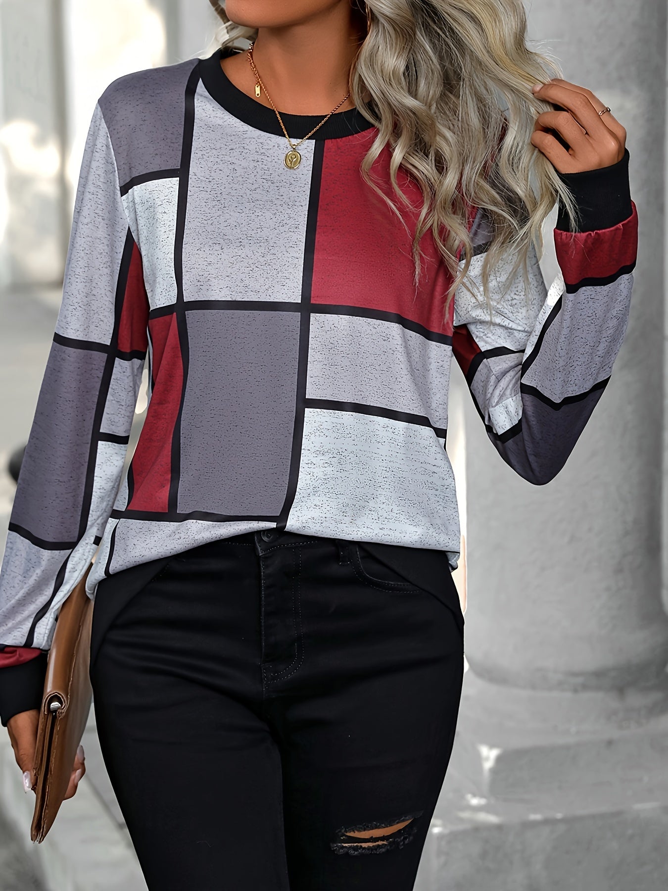 Color Block Pullover Sweatshirt, Casual Long Sleeve Crew Neck Sweatshirt For Fall & Winter, Women's Clothing