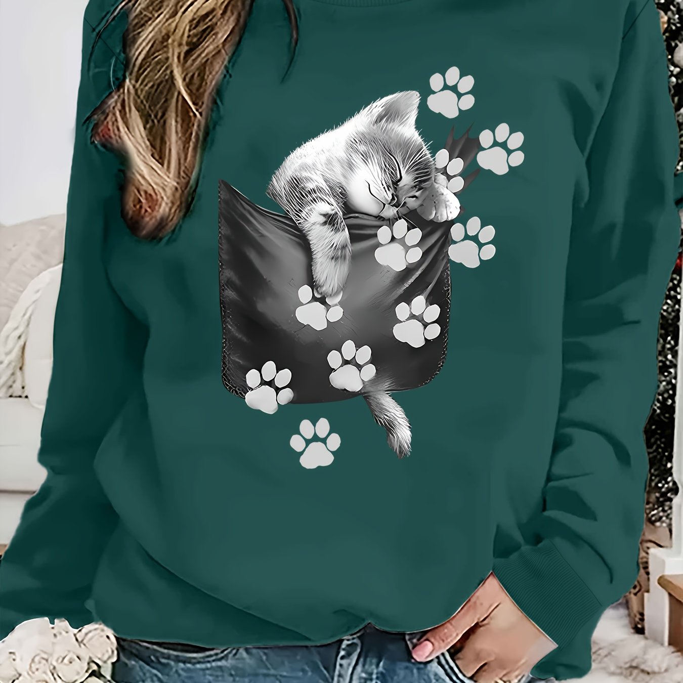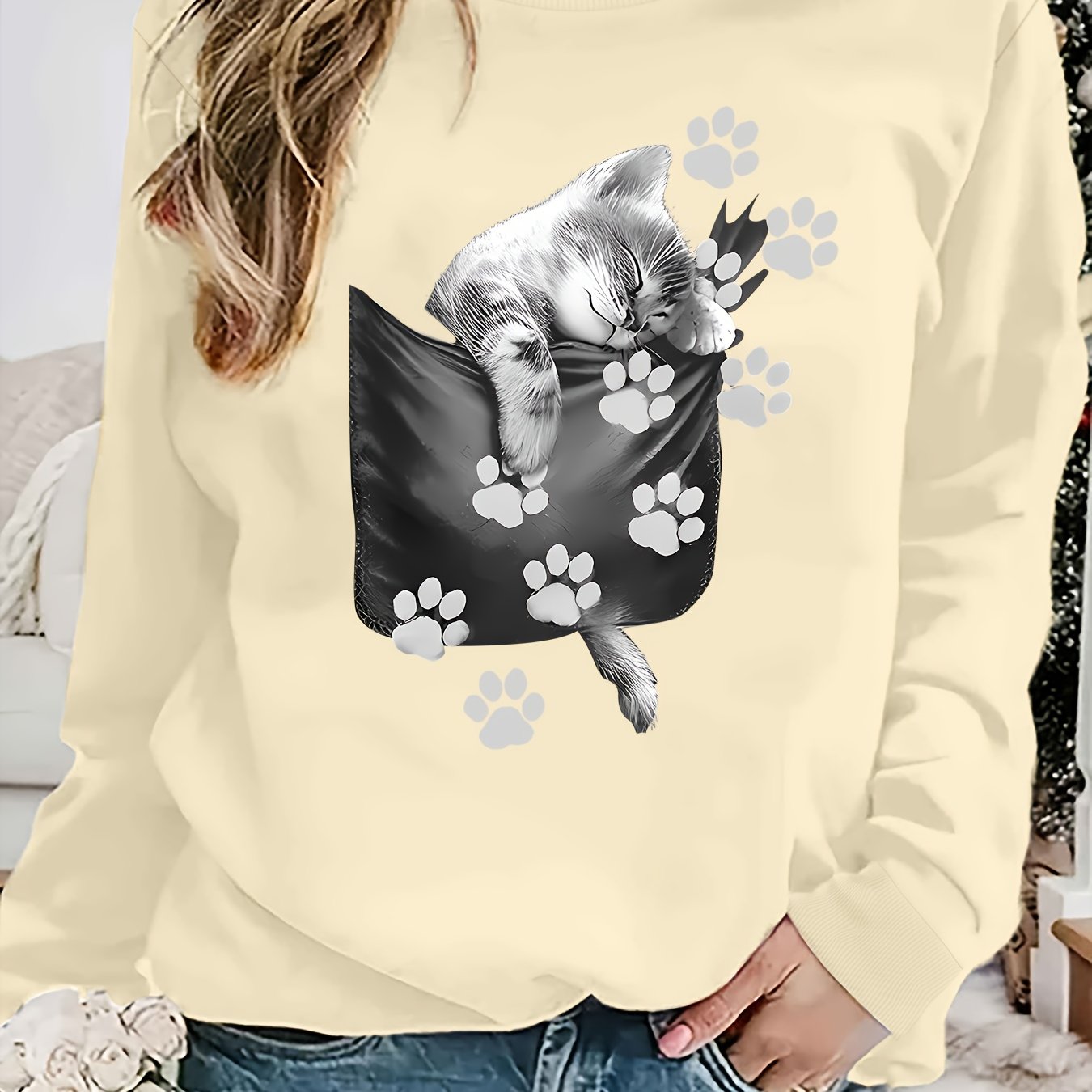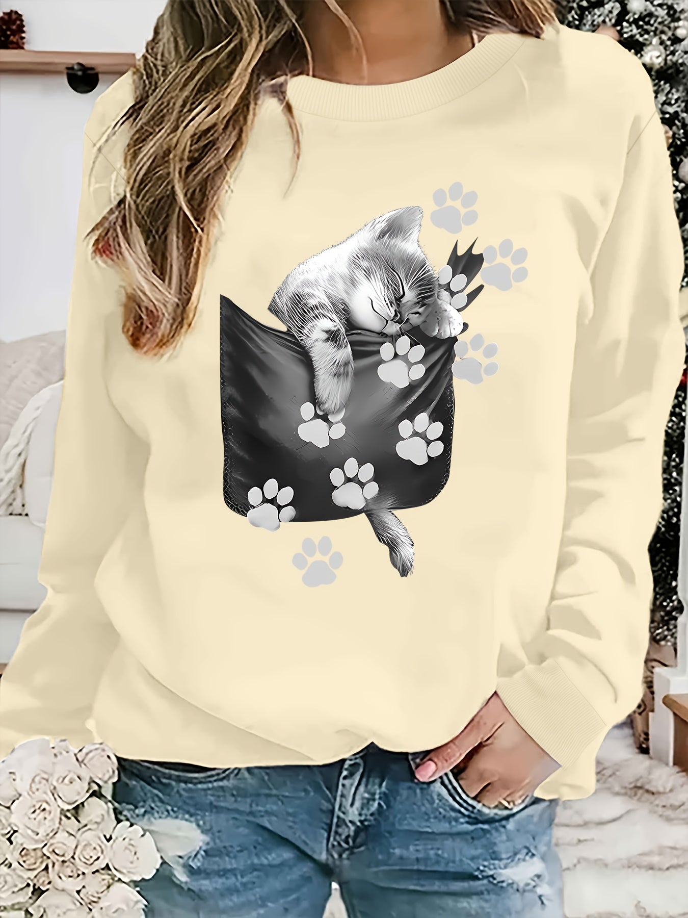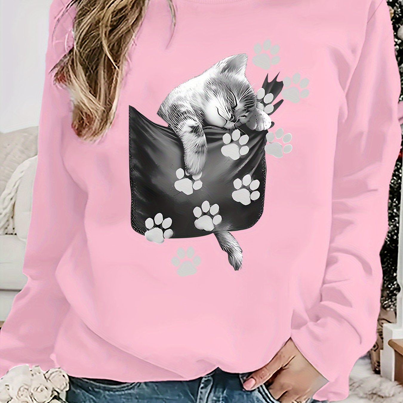 Women's Cozy Cat Print Sweatshirt for FallWinter | Casual Crewneck