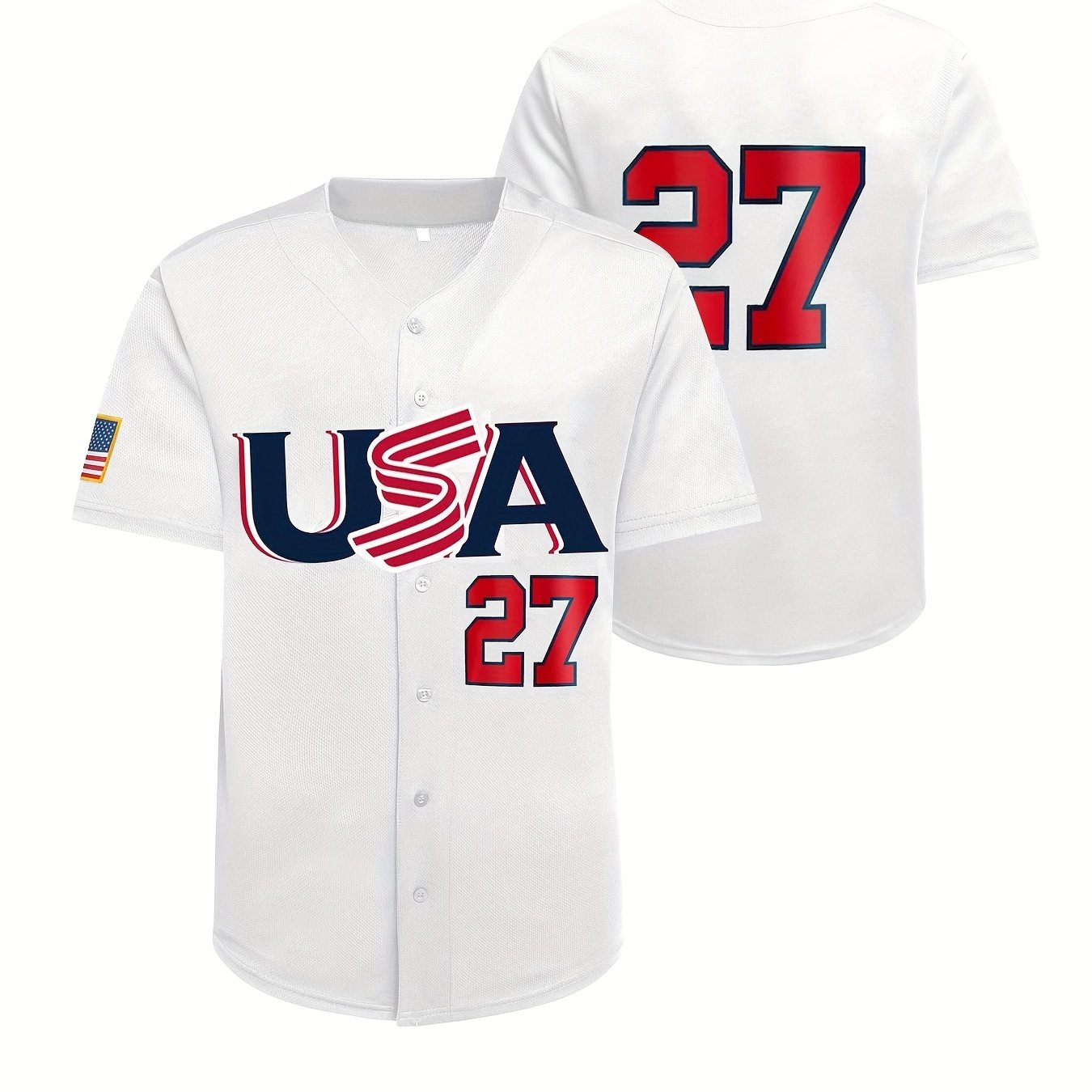 Men's Baseball Casual Shirt USA # 27 Men's Casual Fashion Jersey Size S-XXXL, USA Shirt For Training