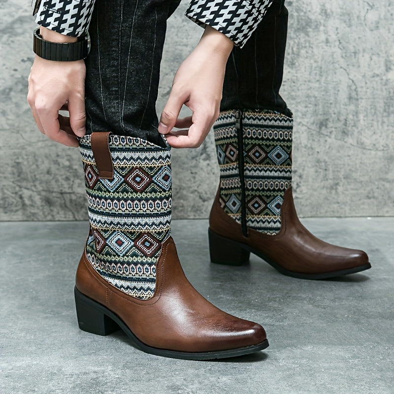 Alright, peeps, time to level up your style game with these epic men's Ethnic High Top Cowboy Boots with Zipper. These boots are NOT your grandpa's dusty old kicks; they scream fresh vibes and bring that 🔥 energy wherever you go. Perfect for all seasons, these bad boys feature a pointy toe cap that'll have you stepping out with confidence. Zip up the stylish boots and let the PU upper material wrap your feet in slick comfort. Whether you've got a concert, date night, or just wanna flex on 'em, these boots have got you covered.