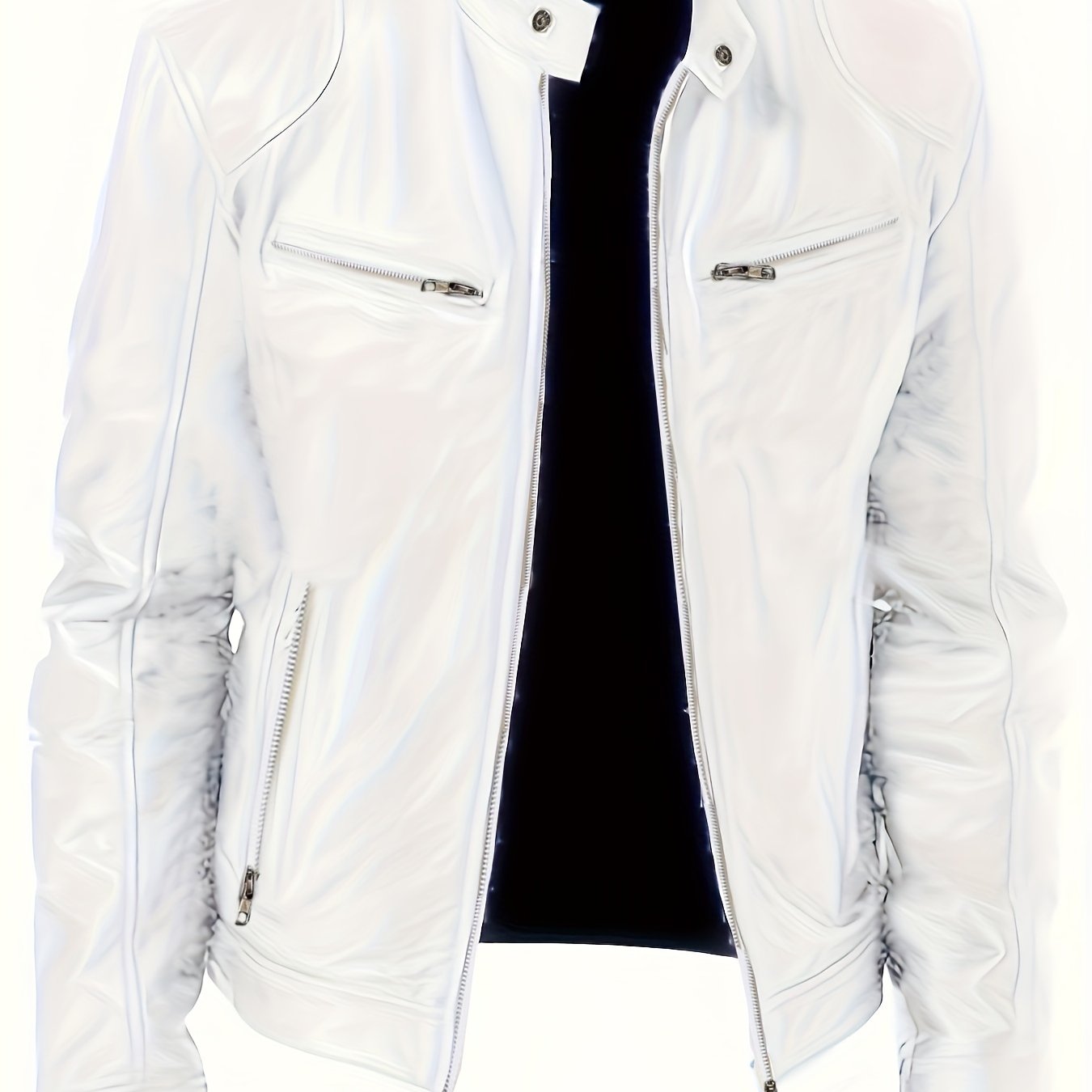 PU Leather Jacket with Zipper Pockets. Solid Color Casual Spring and Autumn JacketCompartir