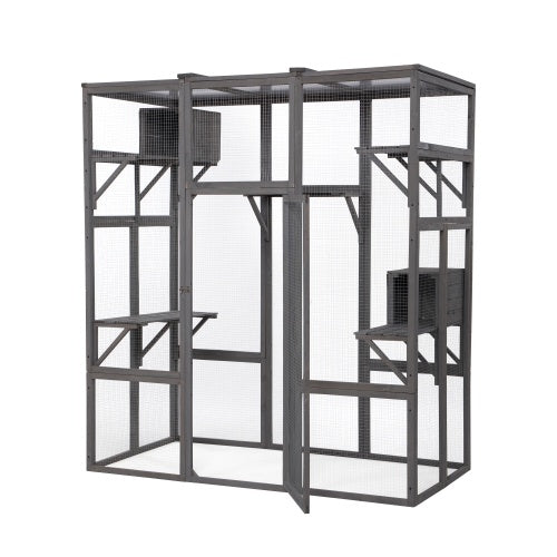 【Large Multiple Cats】: Measuring 62.41 inches long x 32.36 inches wide x 70.08 inches high, a modern pet house offers plenty of space for your multiple cats and small animals to run, rest, jump, and climb.