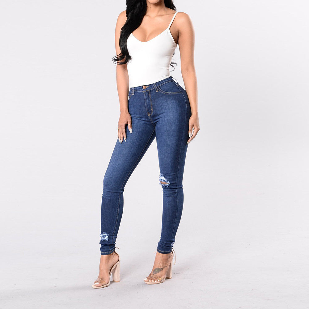Ripped Slim Slim Pants Dark Temperament Denim Pants