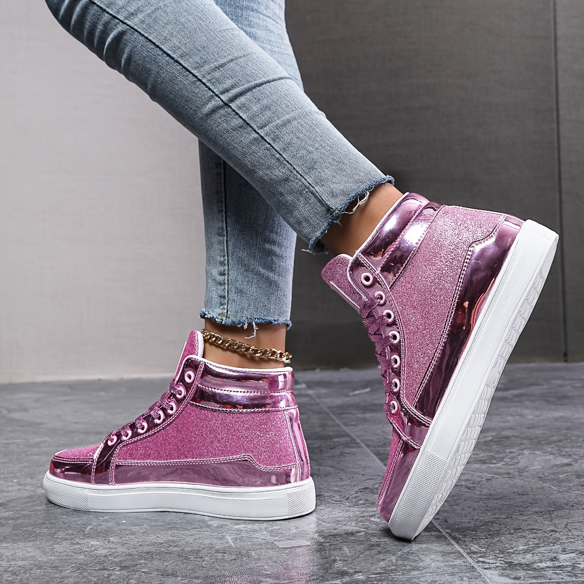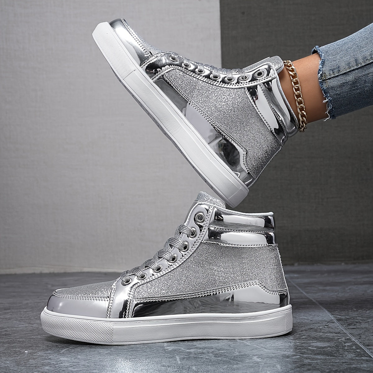Women's Silvery Grey High Top Skate Shoes |Flat Wear Resistance Non Slip Sneakers