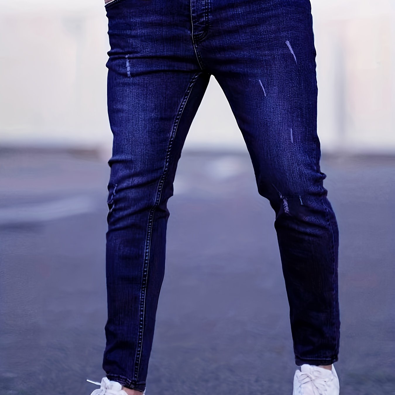 Men's Slim Fit Moustache Effect Jeans | Black Peacock Navy And Royal Blue
