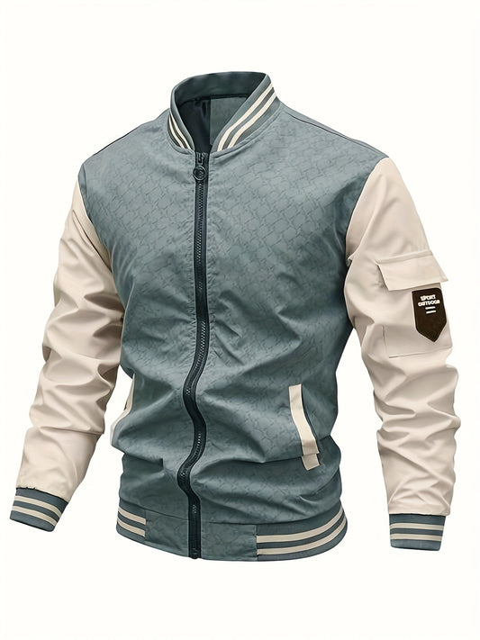 Men's Casual Color Block Bomber Jacket, Chic Baseball Collar Jacket