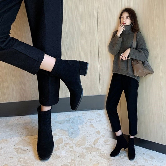 Blacks Shoes For Women's Thick Heel Short Boots New Wild Martin Boots