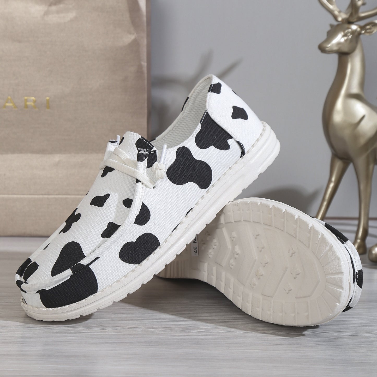 Women's Cow Design Shoes | Casual Lace Up Loafers |